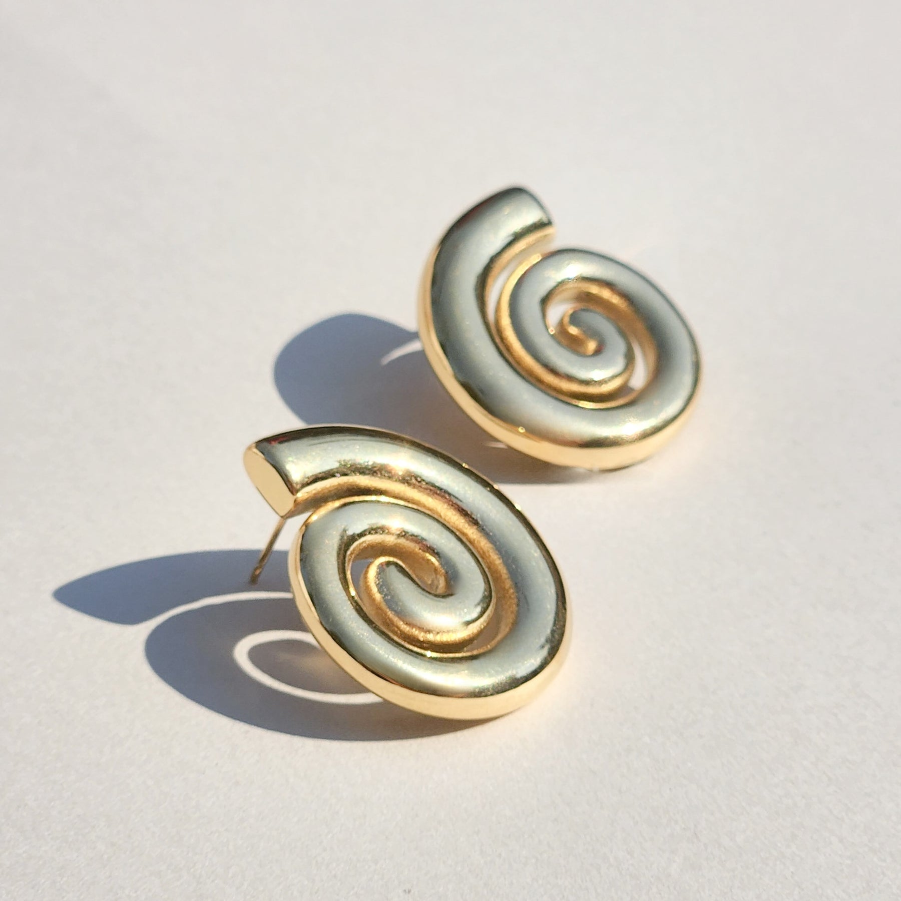 Introducing Lennon, a striking pair of earrings featuring a bold and intricate spiral design. Crafted to be both unique and timeless, these earrings offer a stunning silhouette that draws the eye.